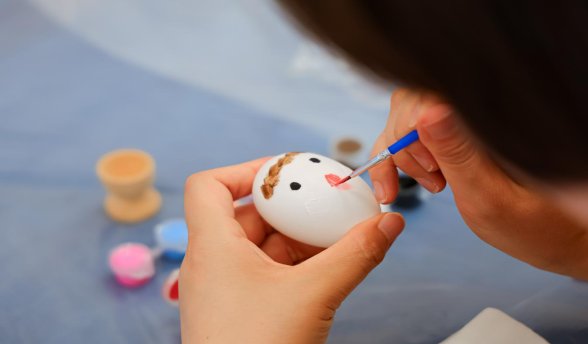 手工體驗環節,大家圍桌而坐,填充香料、綁扎絲帶、裝飾香囊,用畫筆和顏料裝飾自己最特別的那顆彩蛋……一筆一劃充滿喜悅、飽含祝福。